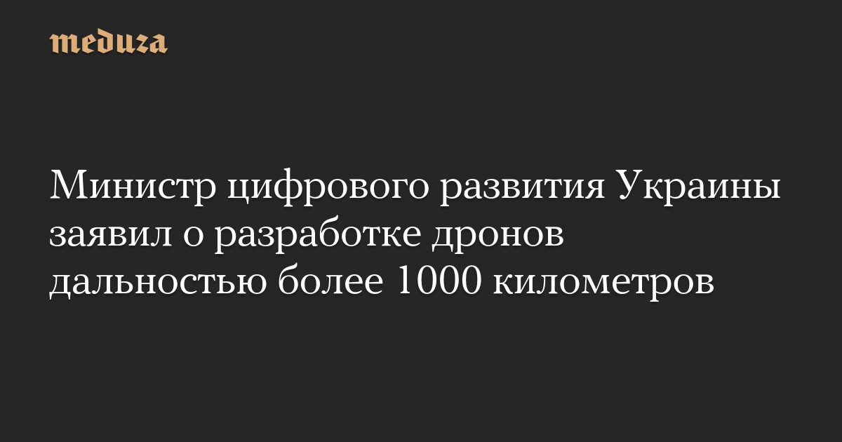 Министр цифрового развития Украины заявил о разработке дронов дальностью более 1000 километров