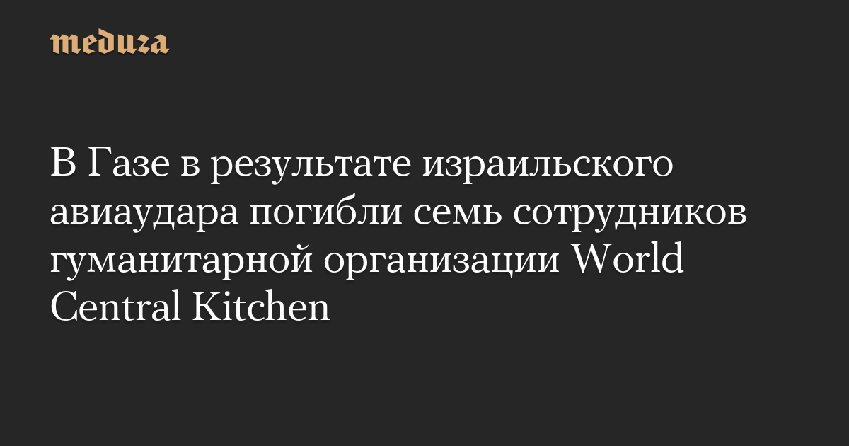 В результате инцидента погибли семь человек, в числе которых граждане Австралии, Великобритании и Польши. В World Central Kitchen назвали атаку «непростительной», подчеркнув, что автомобили конвоя были брендированы логотипами организации, а передвижение осуществлялось в координации с израильскими военными.