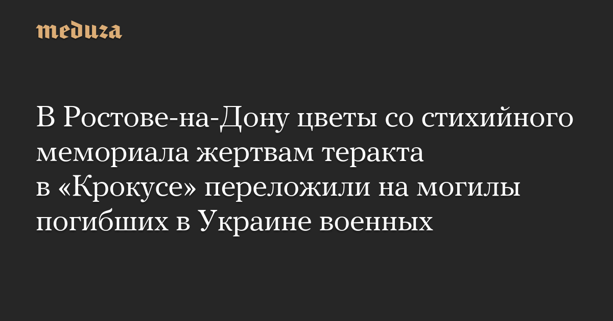 В Ростове-на-Дону цветы со стихийного мемориала жертвам теракта в «Крокусе» переложили на могилы погибших в Украине военных