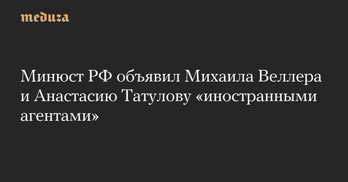 Министерство юстиции РФ включило в реестр «иностранных агентов» писателя Михаила Веллера и предпринимательницу, основательницу сети кафе «Андерсон» Анастасию Татулову.