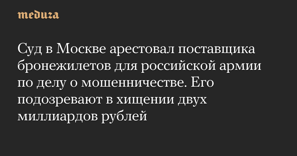 Суд в Москве арестовал поставщика бронежилетов для российской армии по делу о мошенничестве. Его подозревают в хищении двух миллиардов рублей