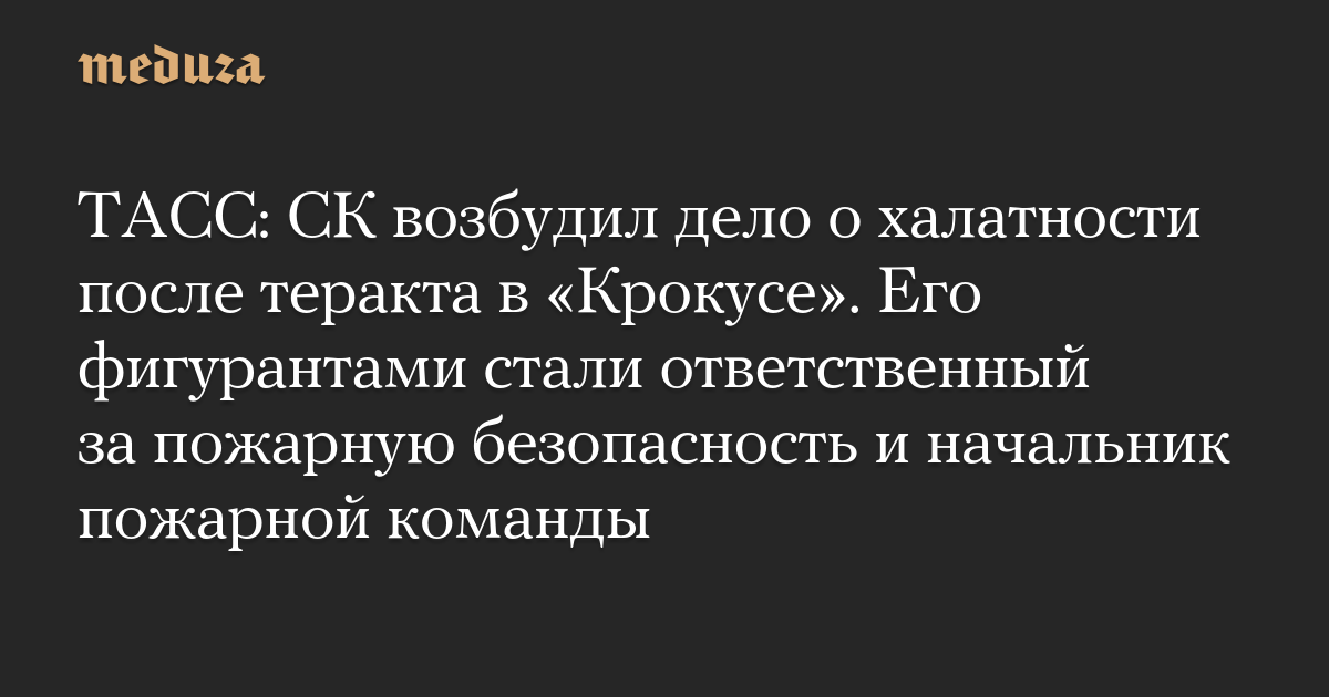 ТАСС: СК возбудил дело о халатности после теракта в «Крокусе». Его фигурантами стали ответственный за пожарную безопасность и начальник пожарной команды