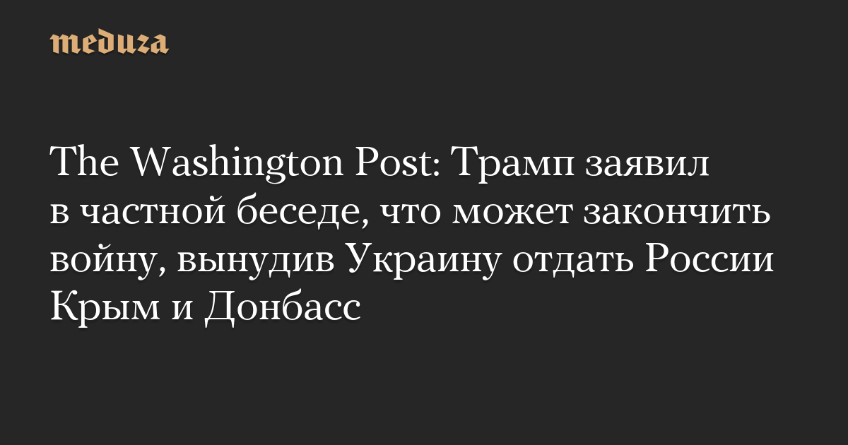 The Washington Post: Трамп заявил в частной беседе, что может закончить войну, вынудив Украину отдать России Крым и Донбасс