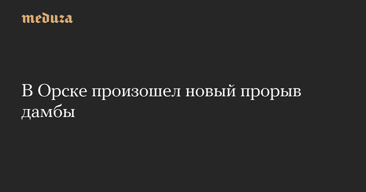 Новый прорыв дамбы произошел в городе Орске Оренбургской области вблизи поселка Лесоторговый, сообщает ТАСС со ссылкой на своего корреспондента. Вода подступает к частным домам.
