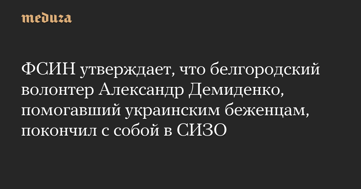 ФСИН утверждает, что белгородский волонтер Александр Демиденко, помогавший украинским беженцам, покончил с собой в СИЗО