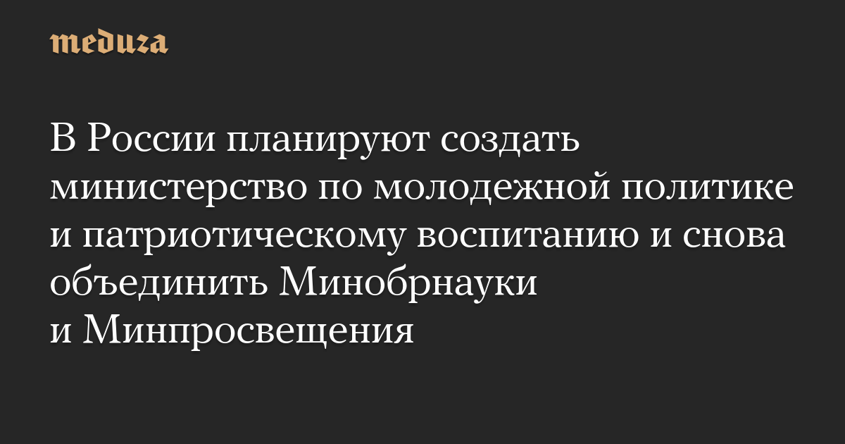 В России планируют создать министерство по молодежной политике и патриотическому воспитанию и снова объединить Минобрнауки и Минпросвещения