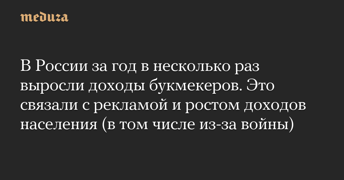 В России за год в несколько раз выросли доходы букмекеров. Это связали с рекламой и ростом доходов населения (в том числе из-за войны)