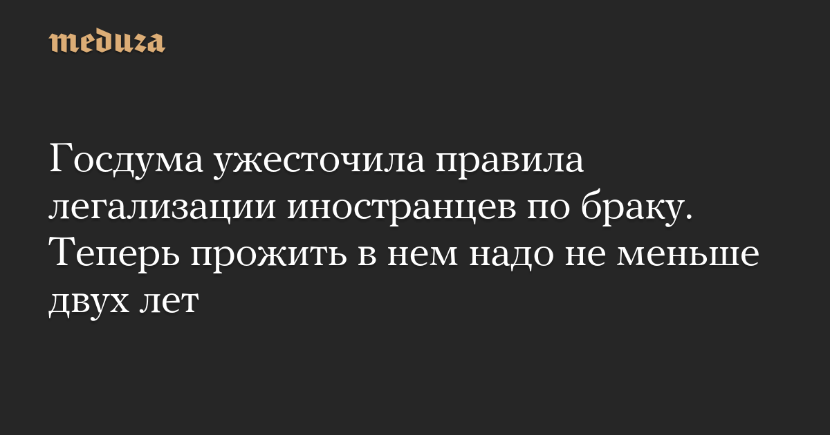 Госдума ужесточила правила легализации иностранцев по браку. Теперь прожить в нем надо не меньше двух лет