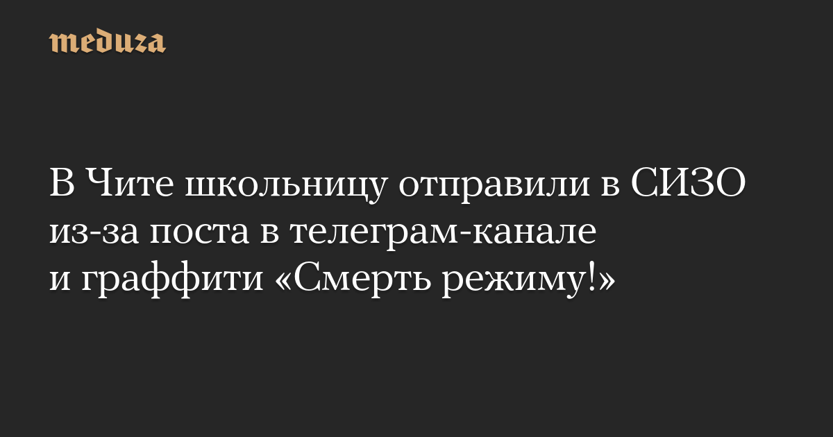 В Чите школьницу отправили в СИЗО из-за поста в телеграм-канале и граффити «Смерть режиму!»