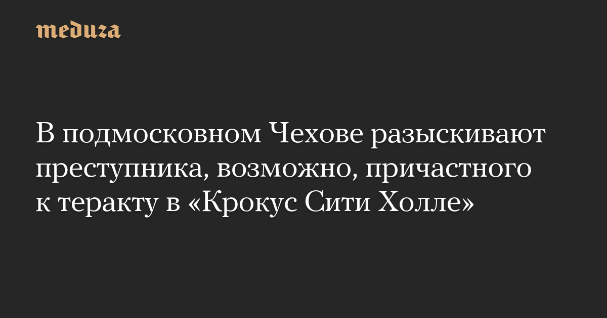 Ранее телеграм-каналы Baza, Shot и 112 сообщили, что в Чехове разыскивается подозреваемый в причастности к теракту в «Крокус Сити Холле» 22 марта.