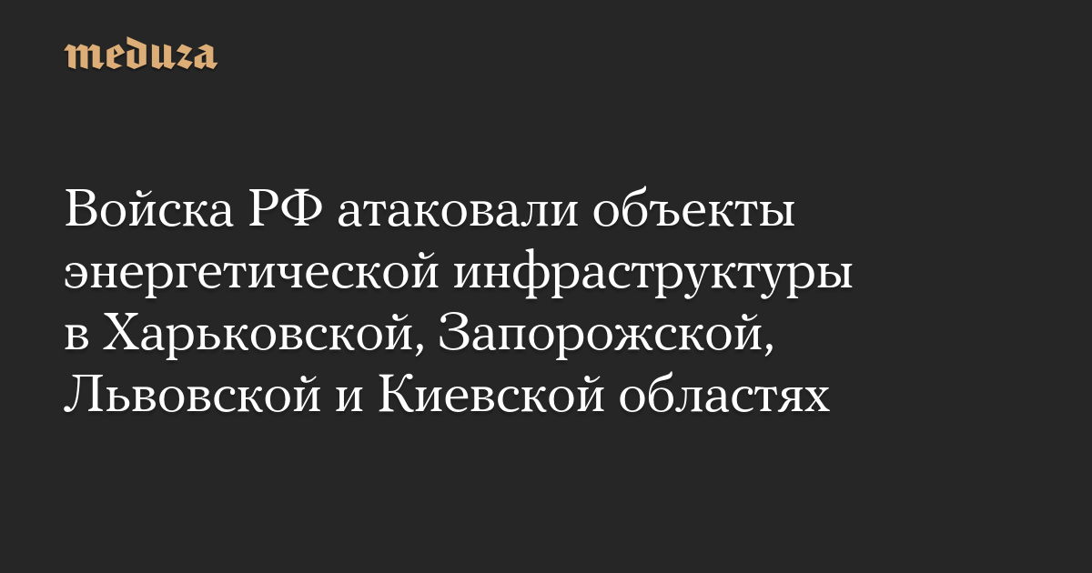 Войска РФ атаковали объекты энергетической инфраструктуры в Харьковской, Запорожской, Львовской и Киевской областях