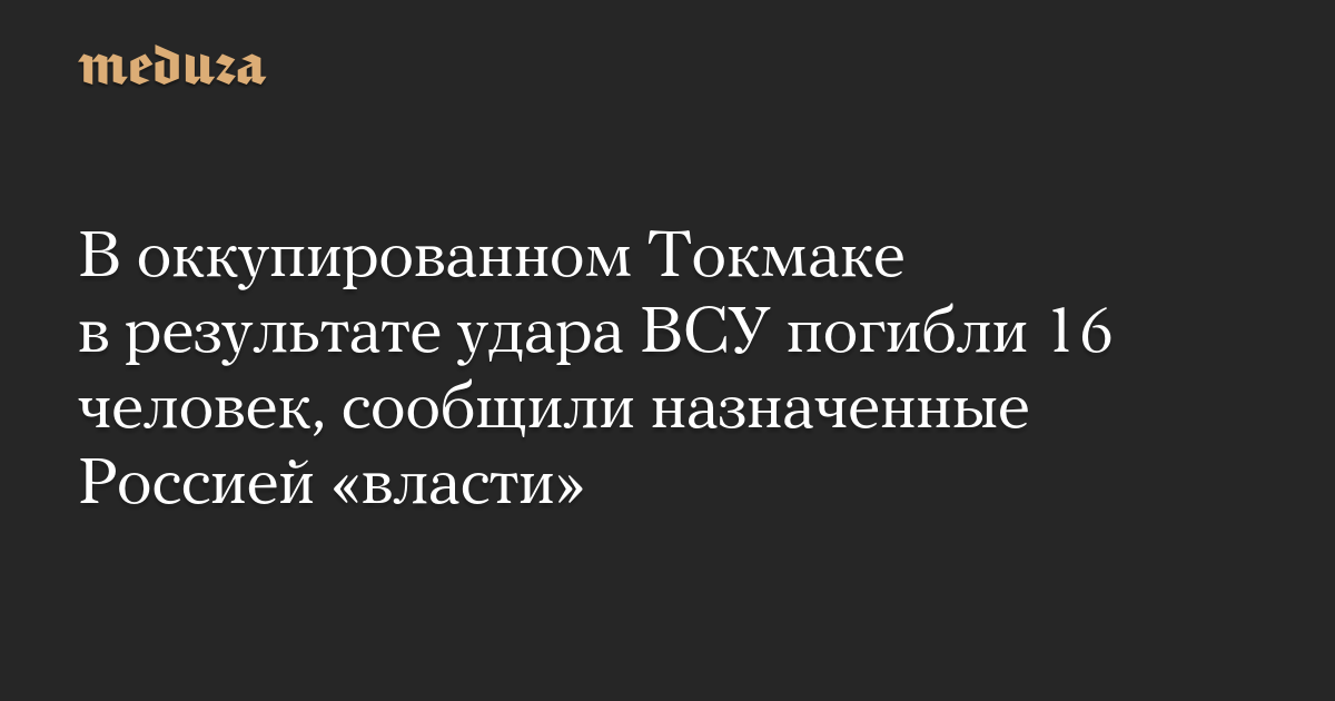 В оккупированном Токмаке в результате удара ВСУ погибли 16 человек, сообщили назначенные Россией «власти»