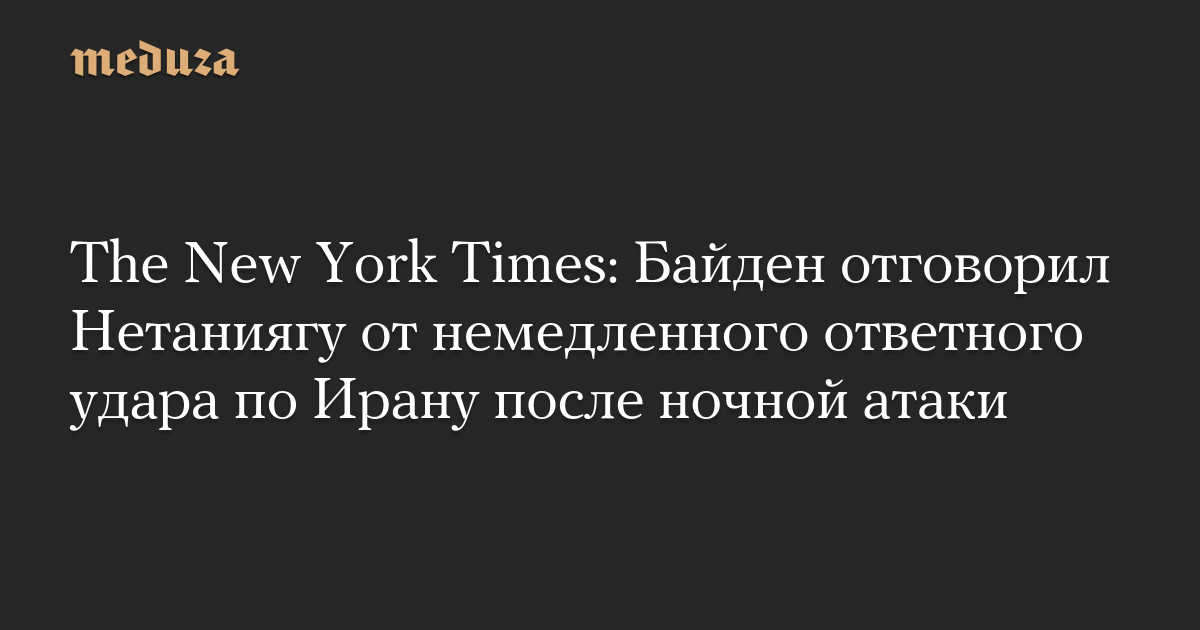 Ранее издание Axios со ссылкой на источники сообщало, что президент США в телефонном разговоре с премьером Израиля после иранского удара сказал, что Вашингтон не поддержит израильскую контратаку против Ирана. «Вы победили — наслаждайтесь успехом», — сказал Байден Нетаниягу, по словам одного из собеседников Axios.