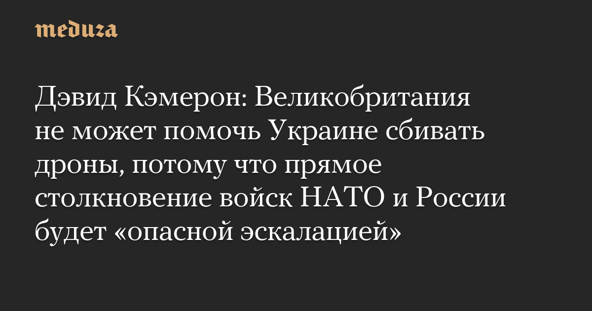 Дэвид Кэмерон: Великобритания не может помочь Украине сбивать дроны, потому что прямое столкновение войск НАТО и России будет «опасной эскалацией»