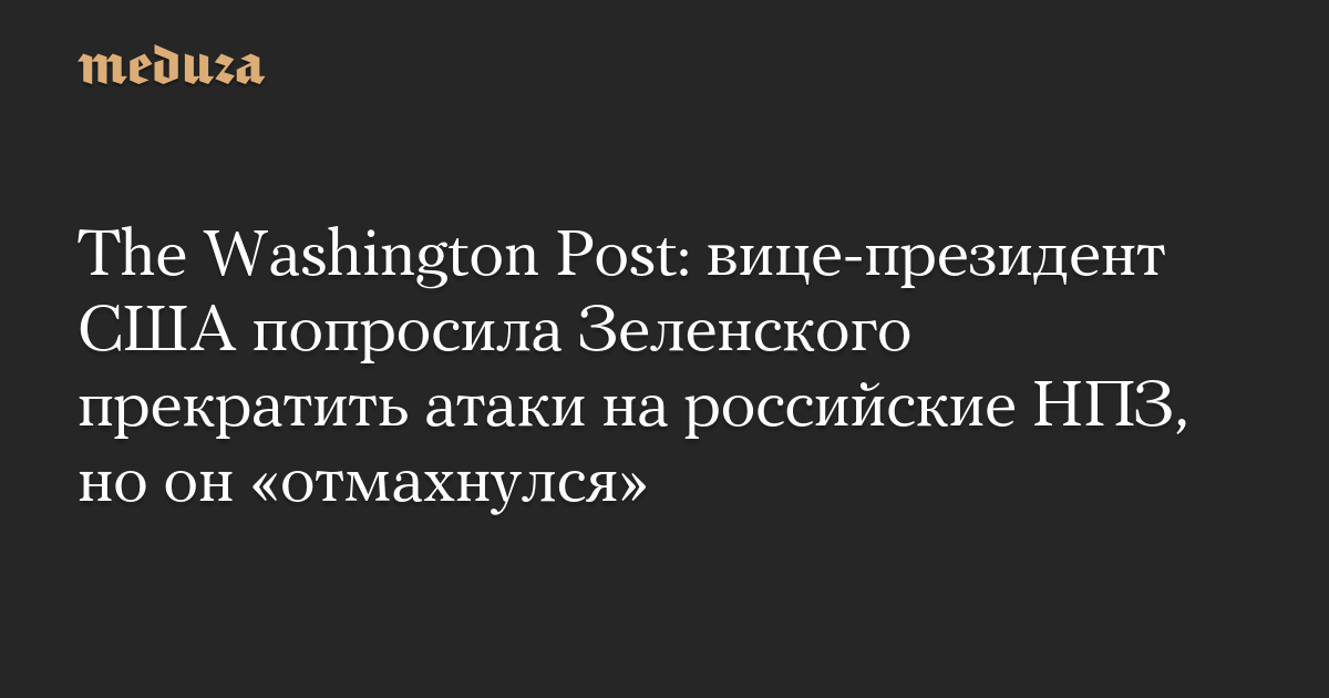 The Washington Post: вице-президент США попросила Зеленского прекратить атаки на российские НПЗ, но он «отмахнулся»