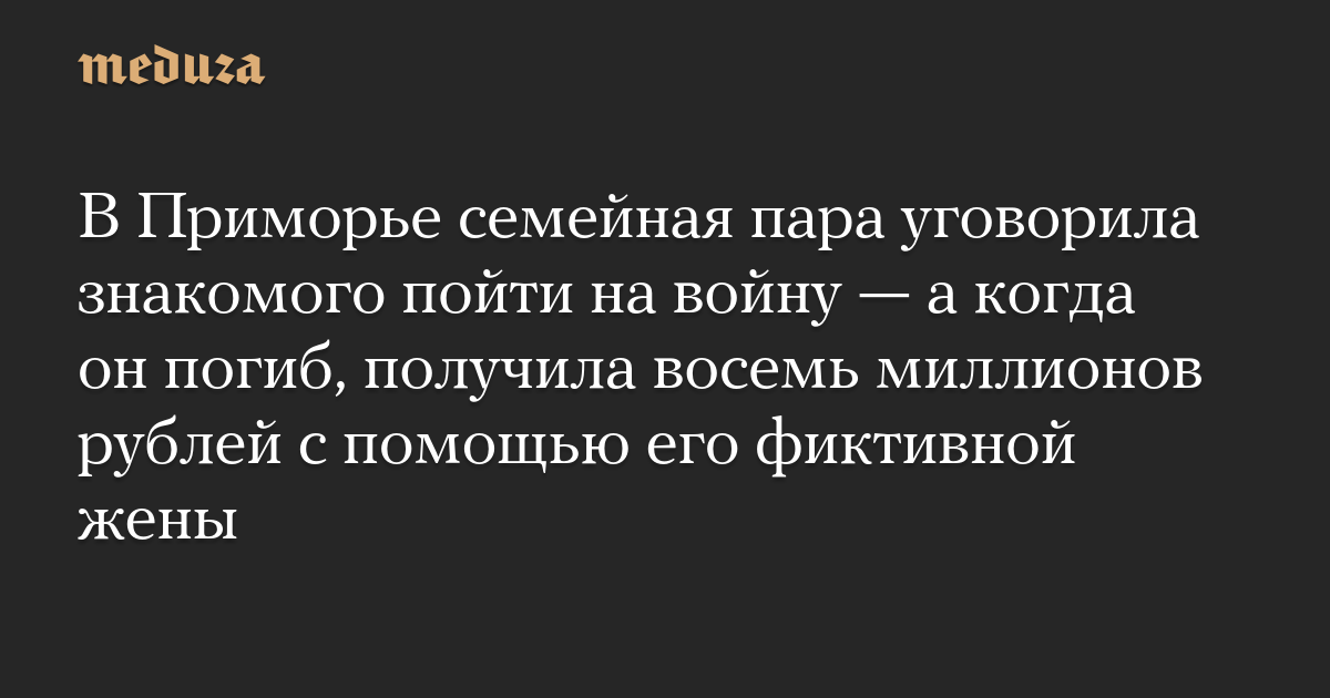 В Приморье семейная пара уговорила знакомого пойти на войну — а когда он погиб, получила восемь миллионов рублей с помощью его фиктивной жены