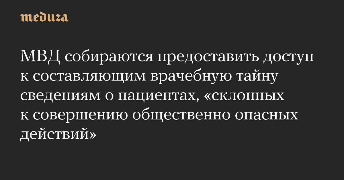 МВД собираются предоставить доступ к составляющим врачебную тайну сведениям о пациентах, «склонных к совершению общественно опасных действий»