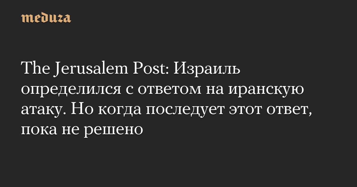 The Jerusalem Post: Израиль определился с ответом на иранскую атаку. Но когда последует этот ответ, пока не решено