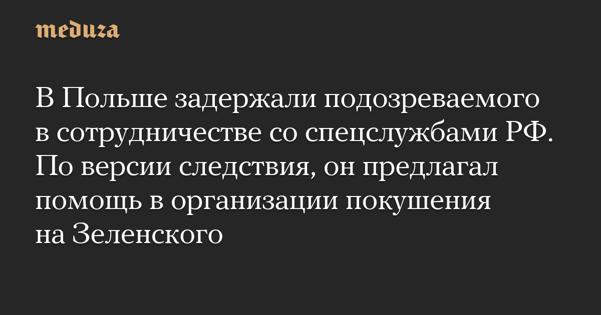 В Польше задержали подозреваемого в сотрудничестве со спецслужбами РФ. По версии следствия, он предлагал помощь в организации покушения на Зеленского