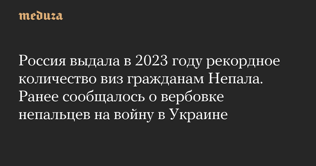 Россия выдала в 2023 году рекордное количество виз гражданам Непала. Ранее сообщалось о вербовке непальцев на войну в Украине