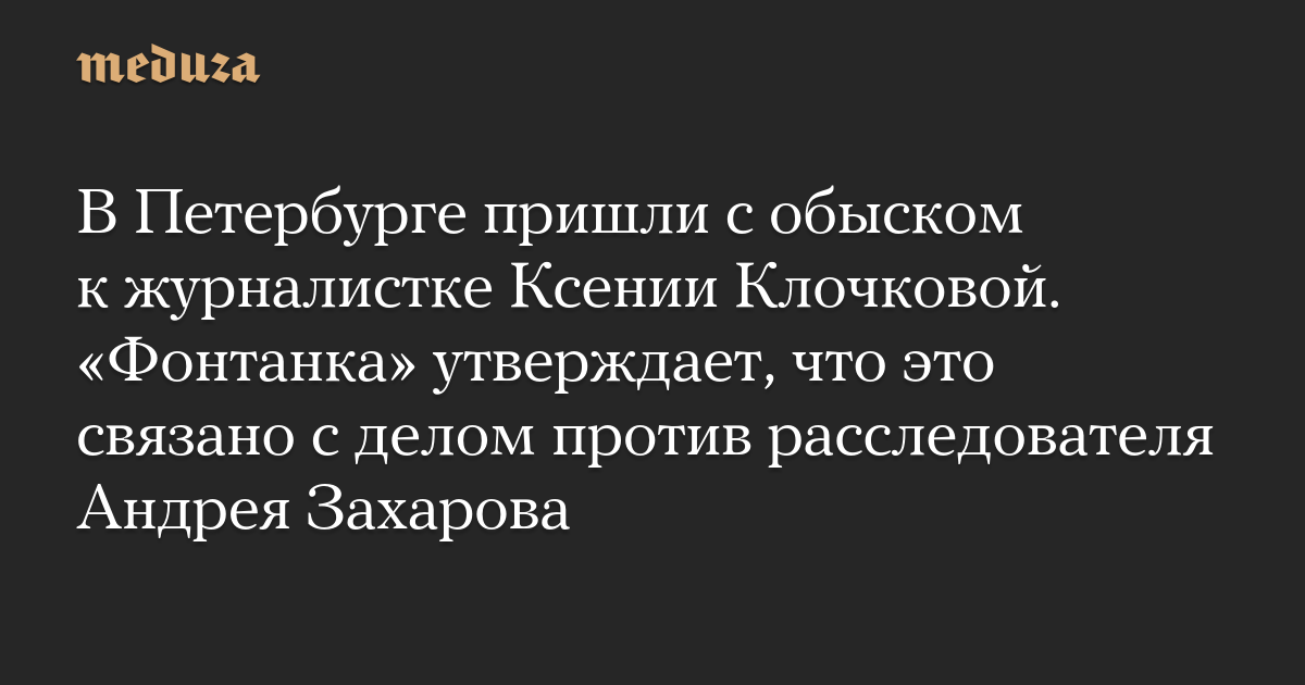 В Петербурге пришли с обыском к журналистке Ксении Клочковой. «Фонтанка» утверждает, что это связано с делом против расследователя Андрея Захарова