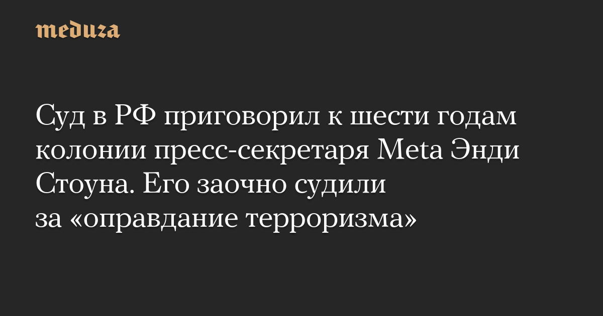 Суд в РФ приговорил к шести годам колонии пресс-секретаря Meta Энди Стоуна. Его заочно судили за «оправдание терроризма»