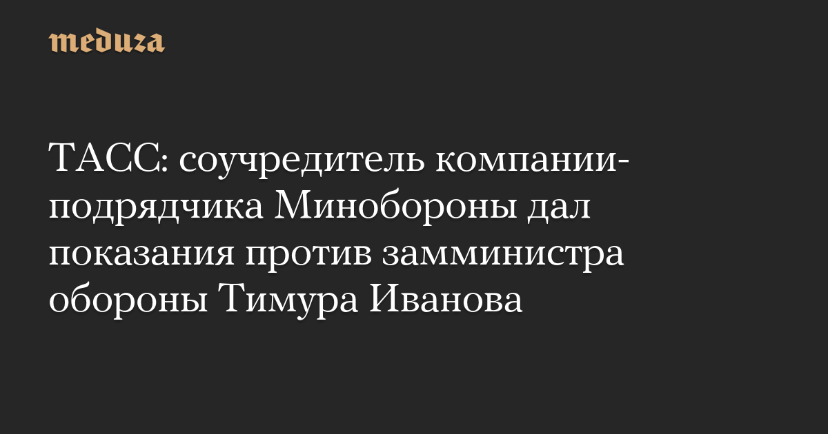ТАСС: соучредитель компании-подрядчика Минобороны дал показания против замминистра обороны Тимура Иванова