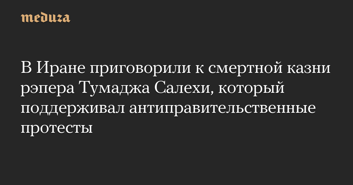 Исламский революционный суд в Иране приговорил к смертной казни популярного 33-летнего рэпера Тумаджа Салехи, поддержавшего антиправительственные протесты в стране. Об этом пишет Reuters.