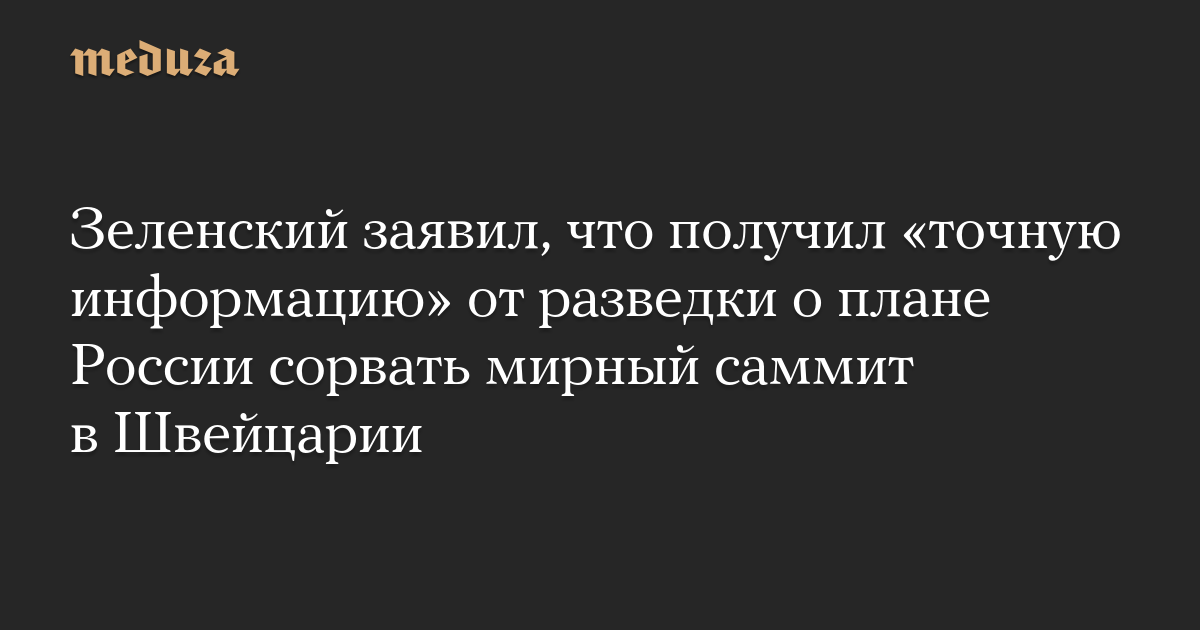 Владимир Зеленский заявил, что у него есть «точная информация» от украинской разведки о планах России сорвать «саммит мира», проведение которого планируется в Швейцарии в середине июня.