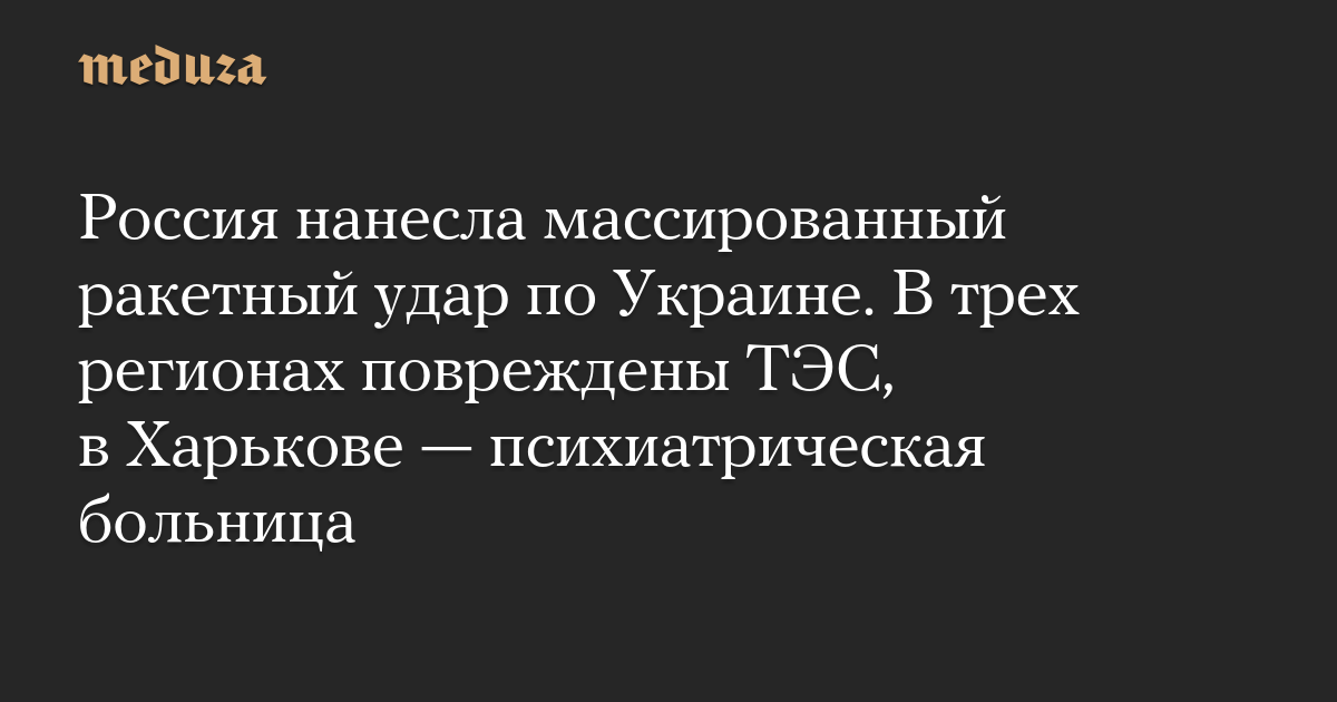 Россия нанесла массированный ракетный удар по Украине. В трех регионах повреждены ТЭС, в Харькове — психиатрическая больница