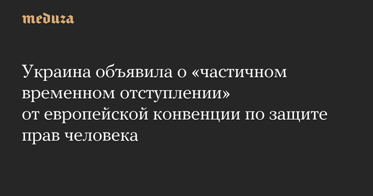 Украина уведомила Совет Европы «о частичном временном отступлении от соблюдения Европейской Конвенции о защите прав и свобод человека». Соответствующий документ, обратили внимание украинские СМИ, включая «Бабель», был опубликован на сайте Совета Европы 29 апреля. Уведомление датировано 4 апреля.
