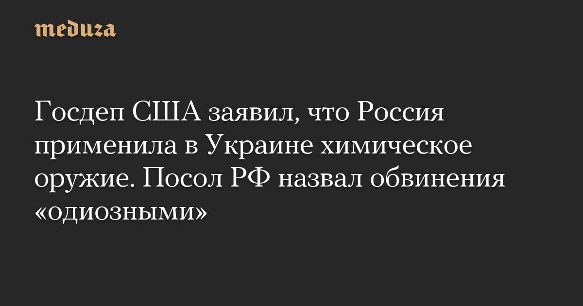 Госдеп США заявил, что Россия применила в Украине химическое оружие. Посол РФ назвал обвинения «одиозными»