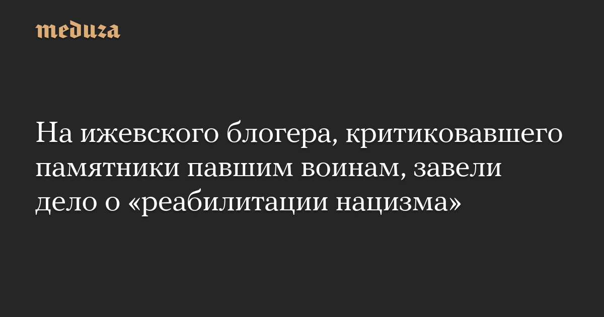 На ижевского блогера, критиковавшего памятники павшим воинам, завели дело о «реабилитации нацизма»