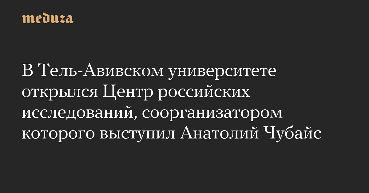 В Тель-Авивском университете начал работу Центр российских исследований, в котором Анатолий Чубайс выступил «организатором группы спонсоров», пишет пресс-служба вуза.