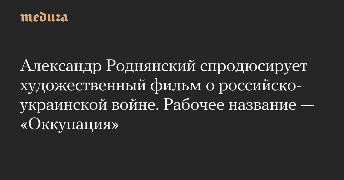 Александр Роднянский спродюсирует художественный фильм о российско-украинской войне. Рабочее название — «Оккупация»