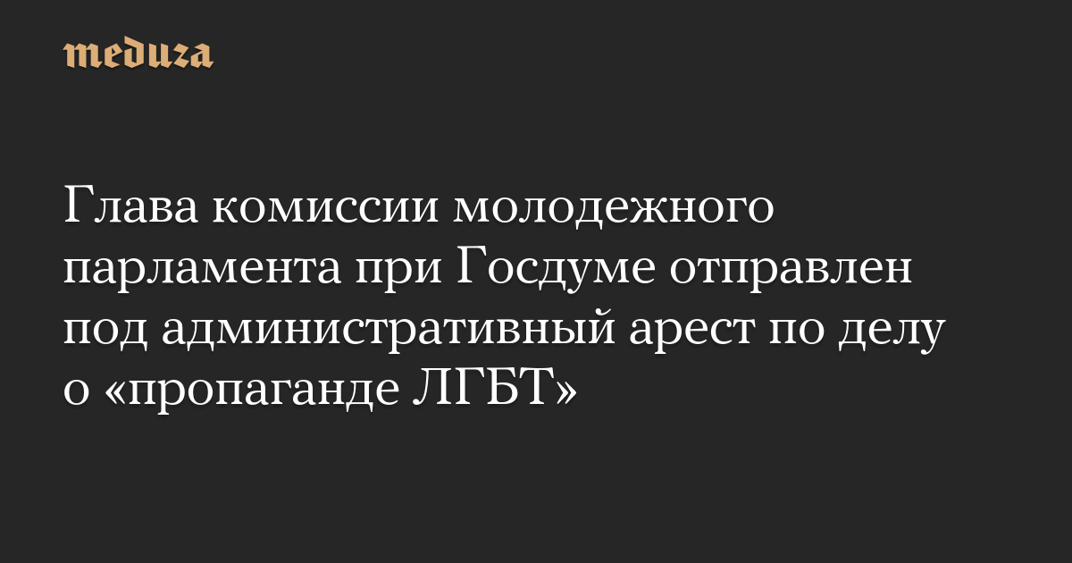 Глава комиссии молодежного парламента при Госдуме отправлен под административный арест по делу о «пропаганде ЛГБТ»