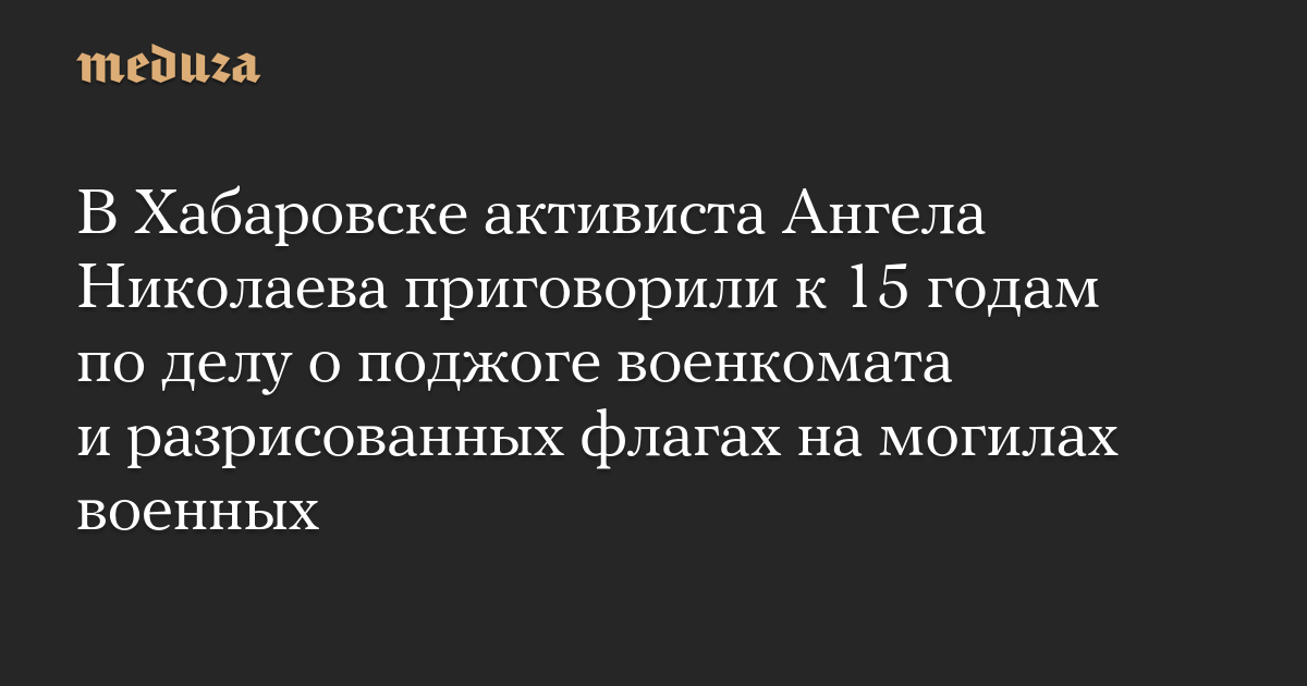 В Хабаровске активиста Ангела Николаева приговорили к 15 годам по делу о поджоге военкомата и разрисованных флагах на могилах военных