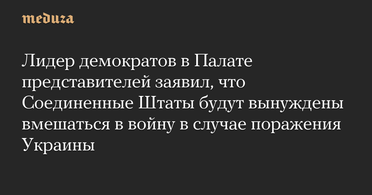 Лидер демократов в Палате представителей заявил, что Соединенные Штаты будут вынуждены вмешаться в войну в случае поражения Украины
