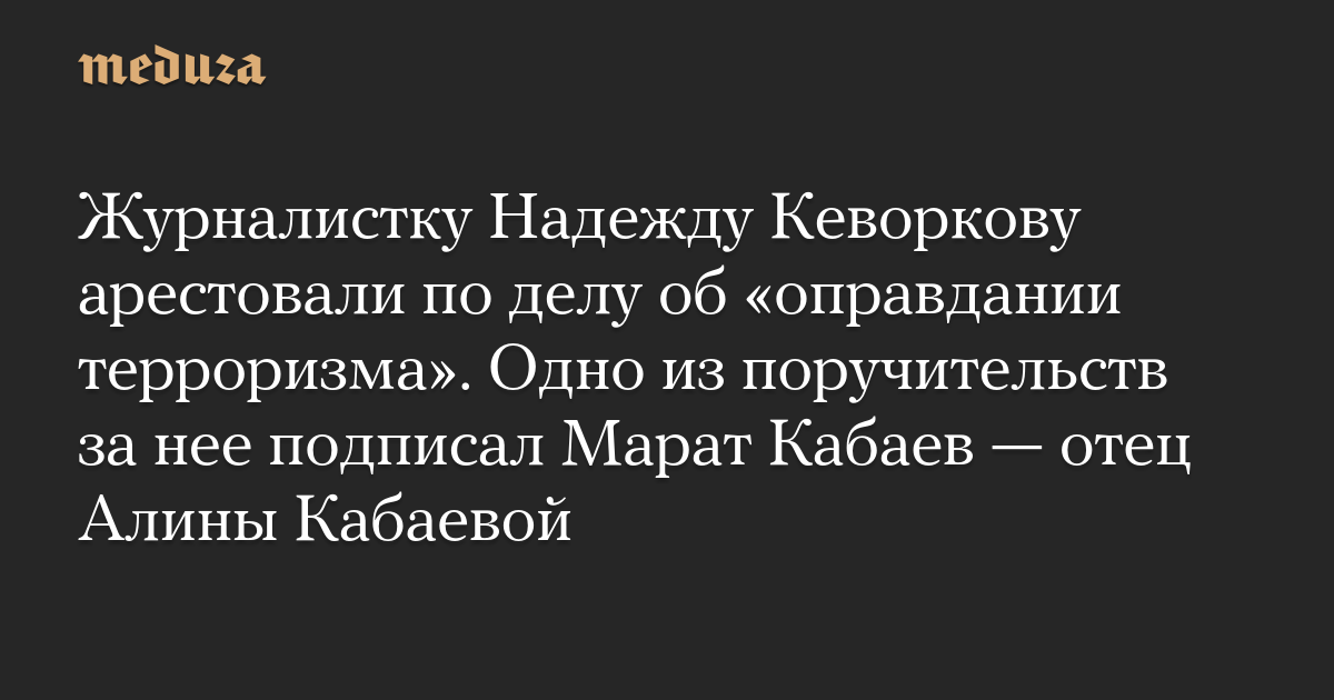 Журналистку Надежду Кеворкову арестовали по делу об «оправдании терроризма». Одно из поручительств за нее подписал Марат Кабаев — отец Алины Кабаевой