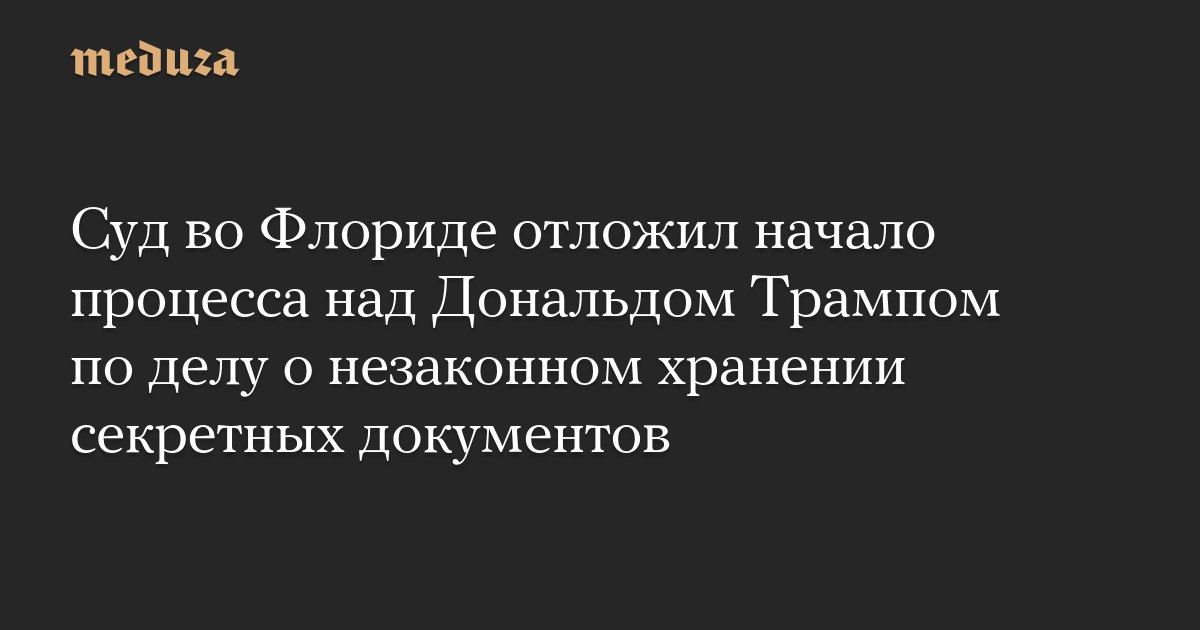 Ранее ожидалось, что процесс начнется 20 мая, но и обвинение, и защита признали, что заседание нужно отложить. Судья Эйлин Кэннон, назначенная Трампом на должность в 2020 году, назначила досудебные слушания на 22 июля, но не определила новую дату начала процесса.