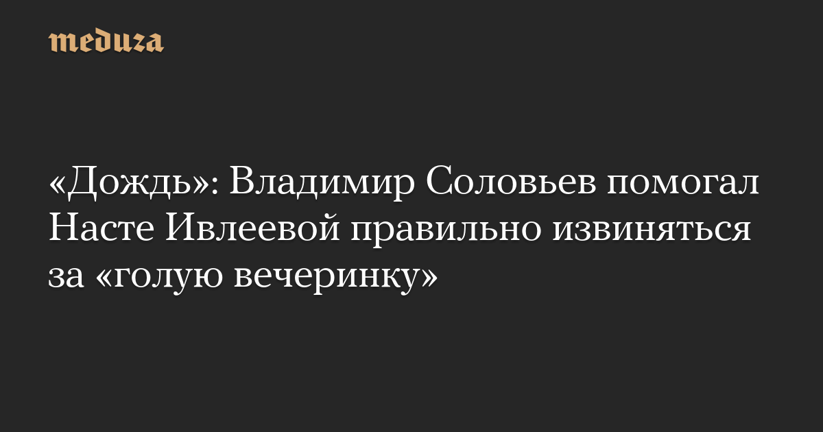 «Дождь»: Владимир Соловьев помогал Насте Ивлеевой правильно извиняться за «голую вечеринку»