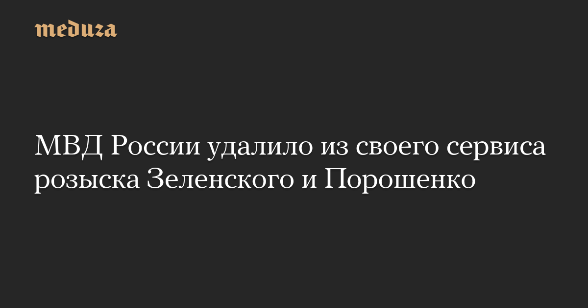 Из сервиса розыска на сайте МВД России пропали упоминания президента Украины Владимира Зеленского и бывшего президента Петра Порошенко, сообщает «Медиазона».