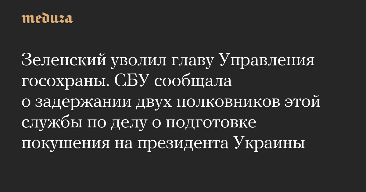 Зеленский уволил главу Управления госохраны. СБУ сообщала о задержании двух полковников этой службы по делу о подготовке покушения на президента Украины