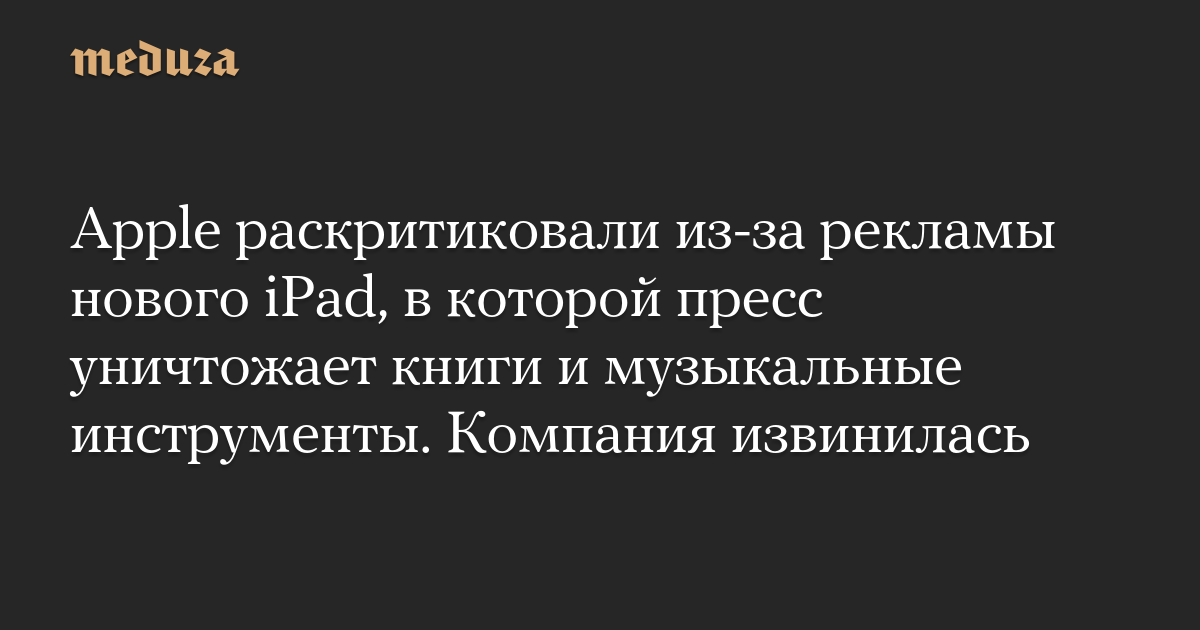 Apple раскритиковали из-за рекламы нового iPad, в которой пресс уничтожает книги и музыкальные инструменты. Компания извинилась