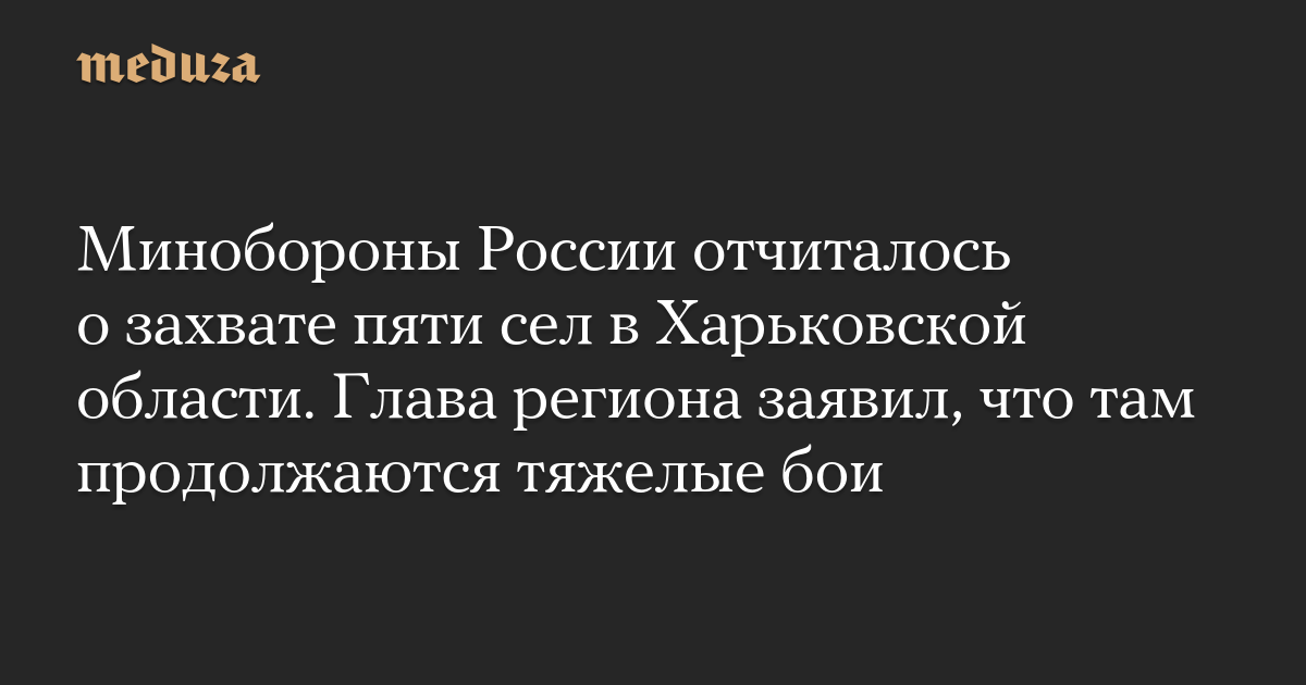 Минобороны России отчиталось о захвате пяти сел в Харьковской области. Глава региона заявил, что там продолжаются тяжелые бои