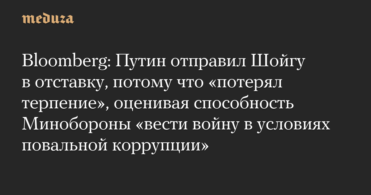 Bloomberg: Путин отправил Шойгу в отставку, потому что «потерял терпение», оценивая способность Минобороны «вести войну в условиях повальной коррупции»