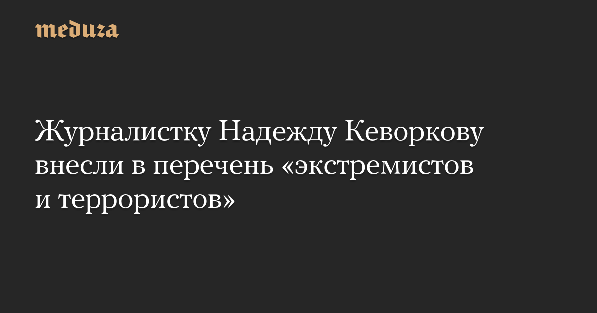 Журналистку Надежду Кеворкову внесли в перечень «экстремистов и террористов»