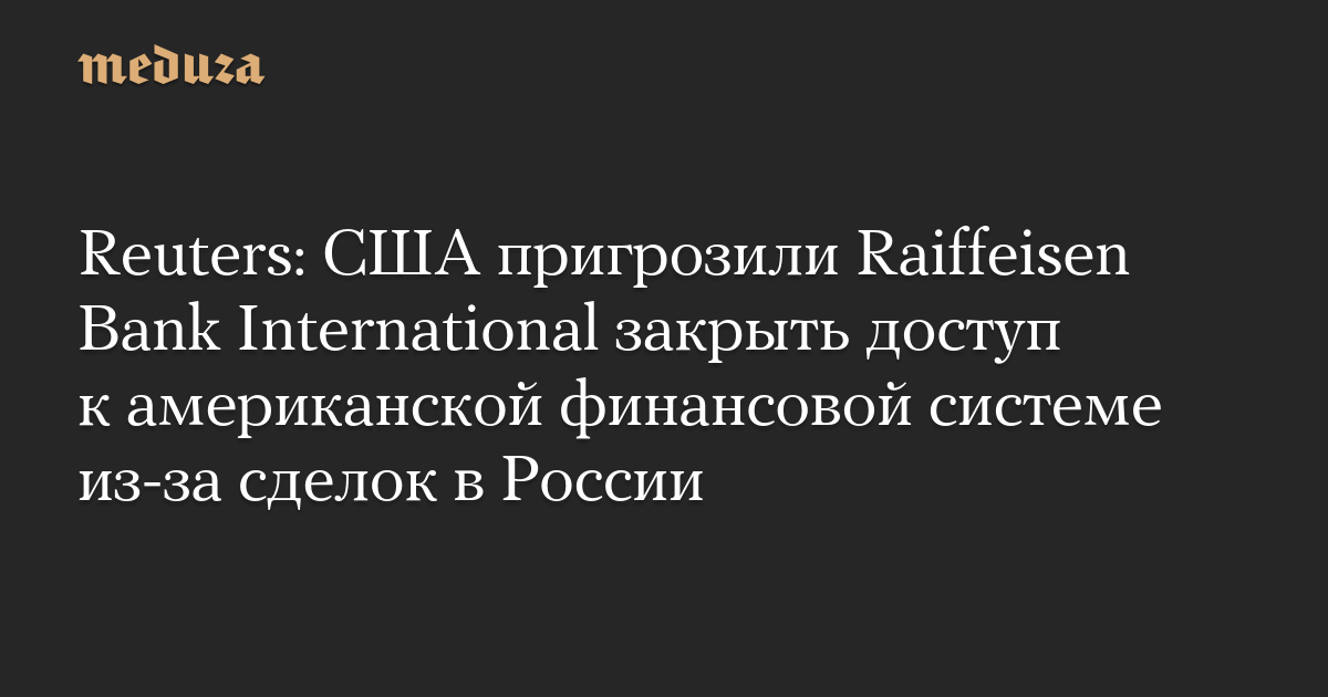 Reuters: США пригрозили Raiffeisen Bank International закрыть доступ к американской финансовой системе из-за сделок в России
