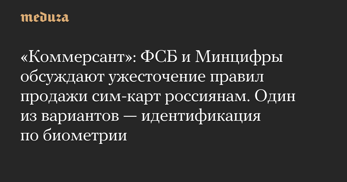 «Коммерсант»: ФСБ и Минцифры обсуждают ужесточение правил продажи сим-карт россиянам. Один из вариантов — идентификация по биометрии