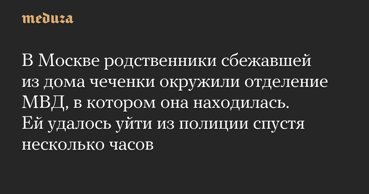 В Москве родственники сбежавшей из дома чеченки окружили отделение МВД, в котором она находилась. Ей удалось уйти из полиции спустя несколько часов